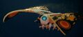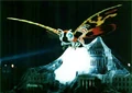 Everything about this Mothra Imago design is done similarly to the ShodaiMosuImago design, but the legs of this Mothra Imago design look more like bird legs. In Rebirth of Mothra, the antennae were remolded, and now look like actual butterfly antennae. This puppet is known as the ReoMosuImago (レオモス成虫?, ReoMosuSeichū) in Rebirth of Mothra.