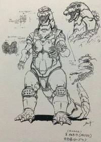 Boceto conceptual de Berserk(Mechagodzilla) por Yutaka Izubuchi