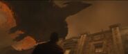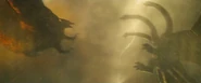W międzyczasie, King Ghidorah wzmocnił się prądem pobranym z elektrowni, dzięki czemu przechylił szalę zwycięstwa na swoją stronę i poważnie poturbował Godzillę, zrzucając go z ponad chmur. Z pomocą dinozaurowi wpierw przyszła Mothra, która zginęła próbując ratować Godzillę, a następnie rodzina Russellów, która naprawiając ORCĘ skupiła na sobie uwagę Ghidory. Stworzona w ten sposób dywersja pozwoliła Godzilli na pełne zaabsorbowanie energii po Mothrze i osiągnięcie płonącej formy, przeciwko której złoty smok był bez szans - Godzilla kompletnie zniszczył King Ghidorę, spalając go do ostatniej komórki. Tuż po zakończeniu walki, do Bostonu przybyli Behemoth, Methuselah, Scylla i GNOL 3, podążający za sygnałem alfy, który wysłała ORCA. Tuż po nich, przed Godzillą wylądował ranny Rodan. Dinozaur pamiętający jak ten walczył przeciwko niemu, groźnie spojrzał na pterozaura, lecz Rodan pokłonił się mu, a w ślad za nim zrobili to pozostali Tytani, uznając tym samym Godzillę za swojego alfę.