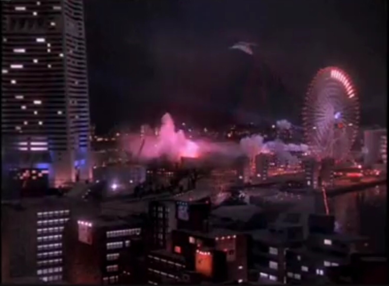 During the battle between Godzilla, Mothra, and King Ghidorah in downtown Yokohama, the Cosmo Clock 21 could be seen in the background.
