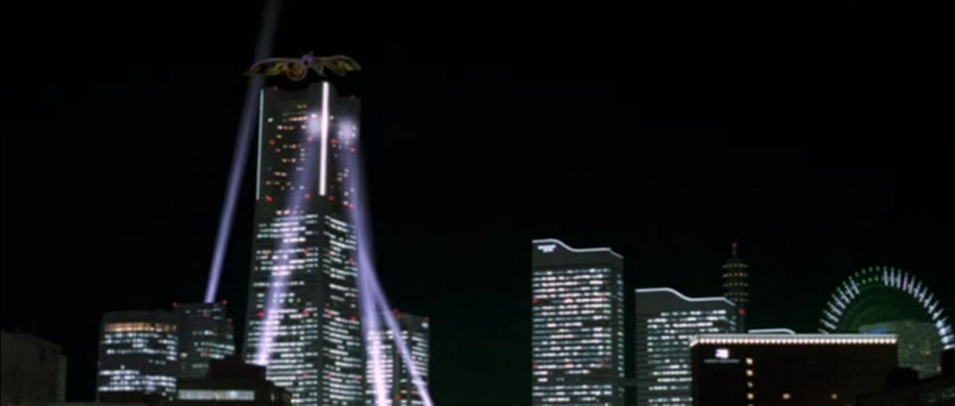 Battra and Godzilla fight near the Cosmo Clock 21 in Godzilla vs. Mothra