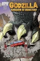 - The full Cover B for this issue features, in addition to Godzilla (IDW continuity), Anguirus, Rodan, Mothra, King Ghidorah, and Kumonga, albeit none of them appear in this issue.