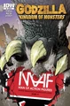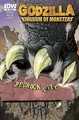 - This issue by far possesses the most variant covers of any Godzilla (IDW continuity) comic or manga. This is because 80 variant covers were created depicting Godzilla's foot crushing any comic shop that ordered 500 copies of the issue.
