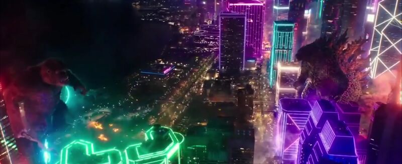 Godzilla's mission to eliminate the threat came into the conflict of Kong who - though having nothing to do with Ghidorah's resurgence - is an example of Godzilla's willingness to eliminate those who oppose him from his goal, in addition to their species' past conflicts. While he displayed brutal and prideful tendencies when fighting Kong at Hong Kong, evident as he gave off a particularly menacing grin followed by a grumble evocative of a chuckle of sorts when he singed Kong's back with his atomic breath, Godzilla's confrontation with Kong was partly due to frustration by his rival unknowingly deterring him from stopping Apex Cybernetics twice. However, this didn't stop him from sparing the ape-like Titan's life since the latter was not the threat he sought and to a subtle degree, Kong's defiance in the face of defeat, earning him the King of the Monsters' respect. This noble decision ultimately saved his life during a hopeless fight against Mechagodzilla, since it allowed Kong to assist his likely ally against a common enemy.