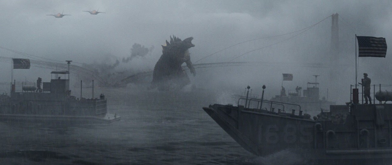 However, unlike previous incarnations, Godzilla doesn't blatantly attack or plow through ships at sea simply because they're there, in fact, with larger ships like aircraft carriers, he simply dives under them, even when the military launched a combined forces assault to stop him, he didn't react or fight back, and simply continued to hunt the MUTOs, even when he was being flanked by four naval ships. As opposed to any sort of morality, it appears to be that he simply considers humans to be tiny and insignificant and does not care about their general well-being but at the same time does not consider them worth destroying even though they, without harming him at all, fire at him nonstop.