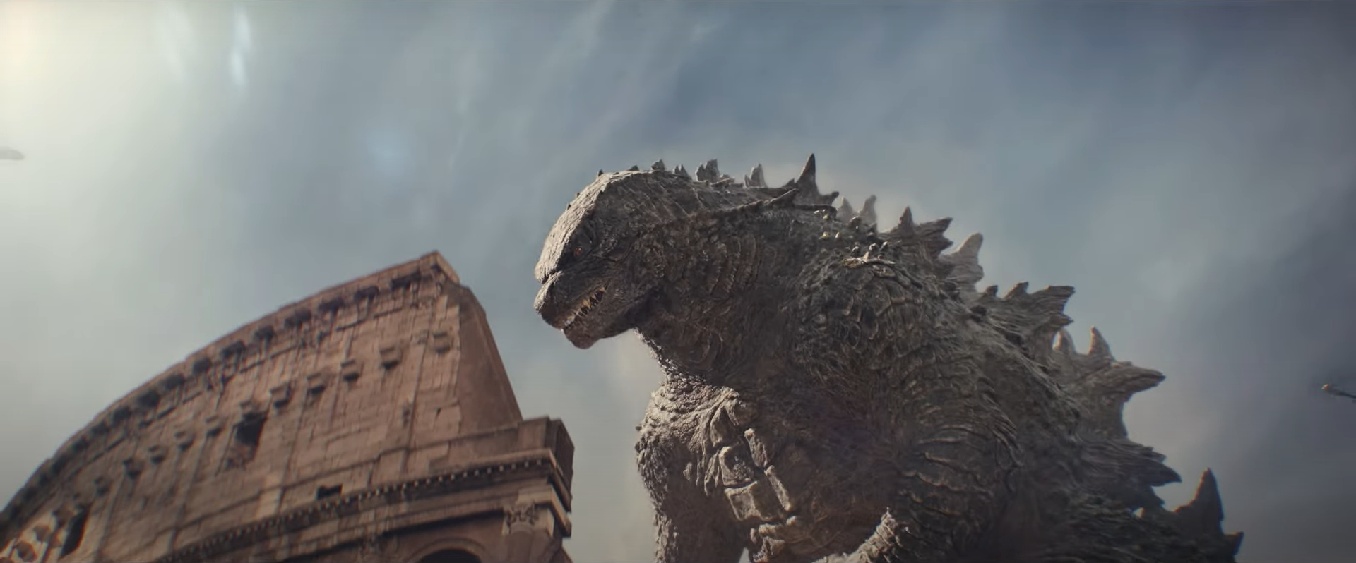 In Godzilla x Kong: The New Empire, when Scylla attacks Rome, Godzilla confronts and defeats her before resting in the Rome Colosseum. However, when the threat of the Skar King and Shimo was imminent, Godzilla attacks a French nuclear plant to absorb its radiation and destroys military drones sent to intercept him. Godzilla is shown to be more aggressive while at the same time retaining a form of restraint, as he doesn't seem to immediately attack human settlements. After his metamorphosis, when he faces Kong in Egypt, Godzilla doesn't even respond to the latter's body language telling him to wait, as he is asking for his help. When he pins Kong, Godzilla doesn't roar in his face to intimidate him like before. Instead, he powers his atomic breath for a killing blow and would have done so had Mothra not intervened. Even so, Godzilla does not kill Shimo when she is freed and uses her powers to help defeat the Skar King. After the battle ends, Godzilla only used his atomic breath to destroy the climate storm she made. This may have been due to Mothra's intervention making him realize he needs to show more restraint. At the same time, Godzilla shares a smile with Kong once the battle was over, showing a more friendly side to himself. When the fight was over, Godzilla returns to Rome and rests once again.