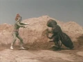After his previous monster failed him, Tonchiki plants a second monster, Antguirus into a colony of ants. After one of the children stomps on the ants, they combine into a large ant that latches on to the child's leg. The remaining three children use the Green Calls to summon Greenman, who pulls the ant off and tosses it off to the side. Fearing defeat, Tonchiki further mutates the ant into Antguirus. Greenman first tries to throw one of his Ear Boomerangs at the monster, but it proves ineffective. They then charge towards each other and begin to fight. Nearing closer to the Underworld's entrance with each punch, Antguirus eventually beats Greenman to the ground and drags him in to the lair. Now inside the Underworld, Antguirus further beats on Greenman until he eventually bites the hero's arm and injects a black liquid into him. Seeing that their hero is near defeat, the children use their Green Calls once more to strengthen Greenman and rid his body of the liquid. Antguirus continues to fight until he is beaten to the ground, allowing Greenman to fly back to the surface. But, Antguirus follows him out; so, Greenman grows to giant size in order to defeat him once and for all. Antguirus does the same, and they continue their fighting on a small mountain. Attempting to put up a final fight, Antguirus sprays the black liquid towards Greenman, but it misses and instead burns Tonchiki who is watching from the ground. Greenman eventually beats Antguirus to the ground with the Greenman Stick and finally destroys him with the Breaster attack.