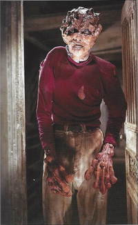 When not colonizing a host, the Matango resemble large mushrooms, with unusually large spores emanating from them. After infecting a human host, the host will gradually grow mats of fungus over their skin, and gradually go insane. Once the Matango has matured, the human's upper body is replaced by a fungal cap, and their lower body becomes equally deformed, with giant legs and long claws attached to gigantic, muscular arms.