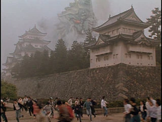Godzilla approaches Nagoya Castle in Mothra vs. Godzilla